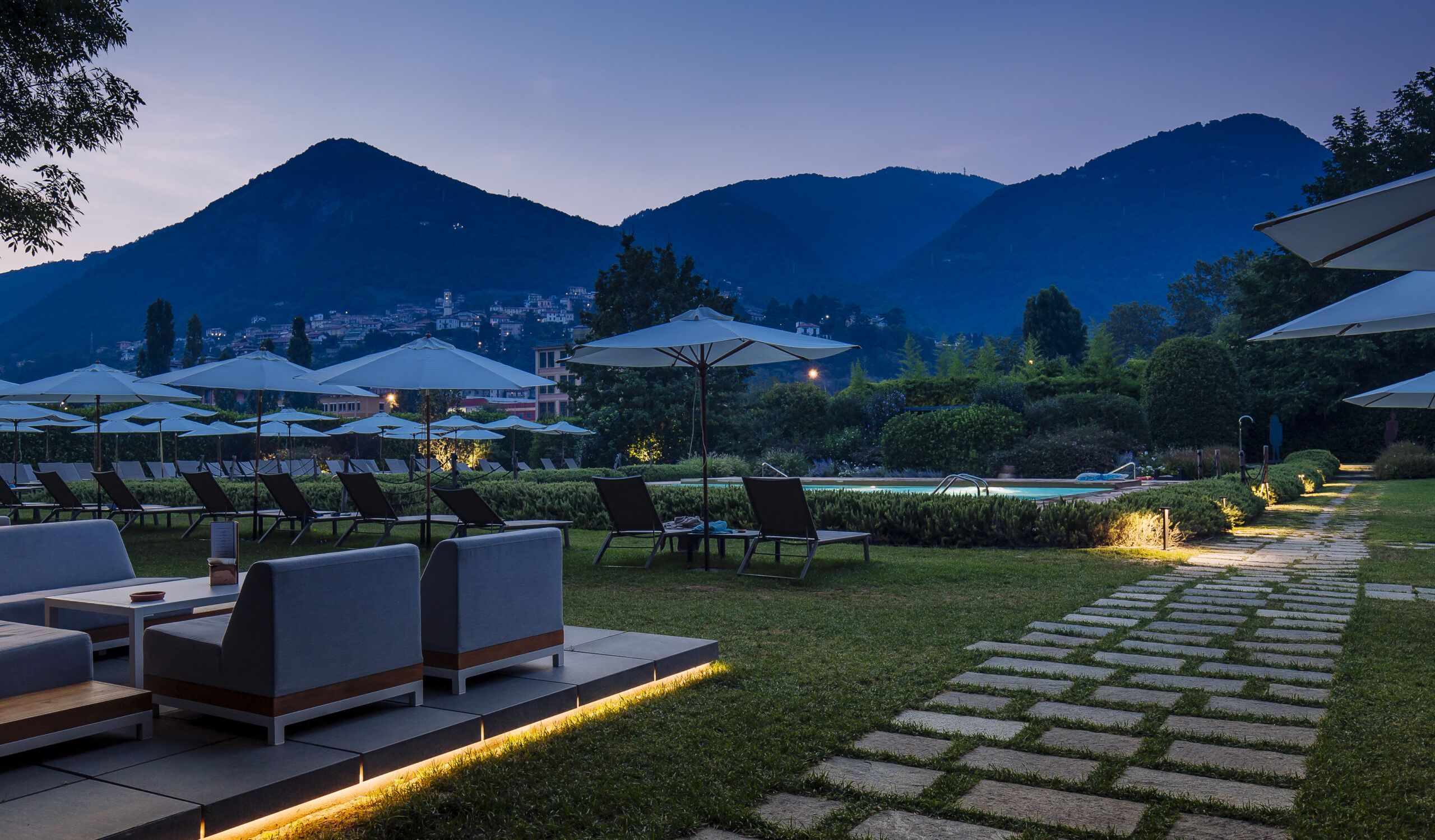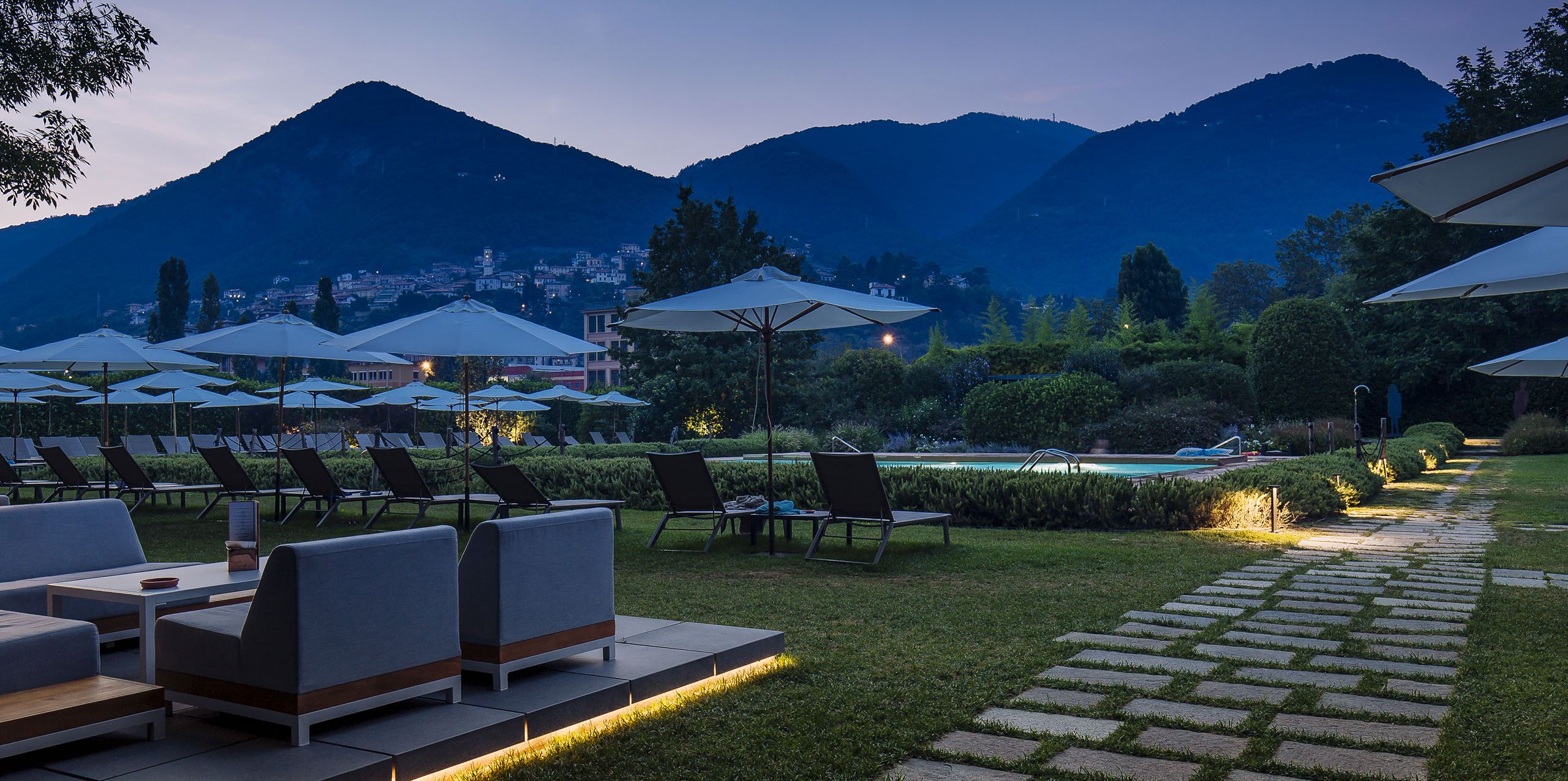 In the rich vegetation of the garden of the Sheraton Lake Como Hotel, elegant outdoor lounges emerge which, when the sun goes down, create an even more exclusive atmosphere.