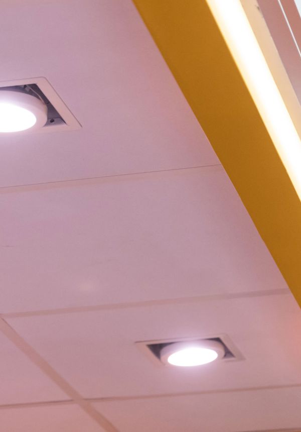 If you have a very large room, the lighting for rooms can also be used to guide customers, playing with contrasts of brightness.