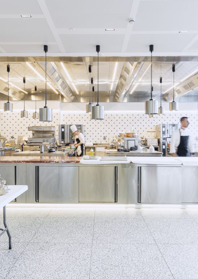 As for the kitchen, the preparation of dishes will need a precise restaurant lighting system and dedicated to high brightness; an excellent solution could be recessed LED spotlights with a narrow opening beam but with a high CRI, so that the chef and his helpers don’t lose even one detail before getting the food out of the kitchen.