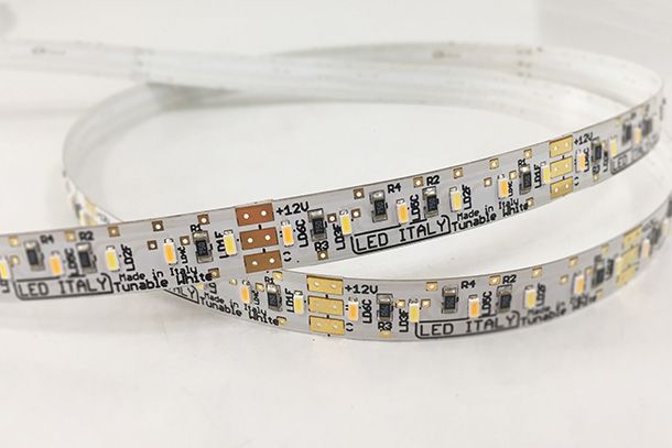 The small section Kapton© printed circuit board is equipped with 240 LEDs, 60+60 SMD 3014, combined between two different CCT, whose mixing, allows a specific range of color temperature range.