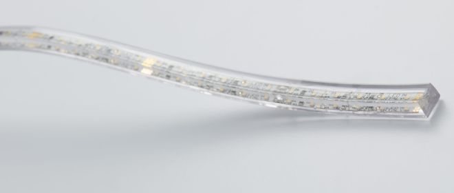 Even the light emission side, processed with a specific perfectly transparent polyurethane resin, with UV protection to prevent yellowing, allows to obtain the maximum luminous effect in a flexible linear element.